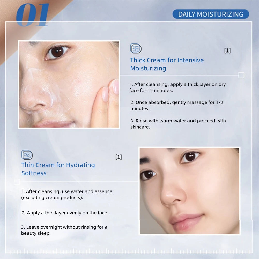 Anwendung: Nach Reinigung und Toner/Serum auftragen. Sanft 1-2 Minuten einmassieren. Tag: Schützende Hydration. Nacht: Intensive Reparatur. Sichtbare Ergebnisse ab Tag 10. Bei Falten, Erschlaffung, fahler Haut und Hals-Dekolleté-Problematik.